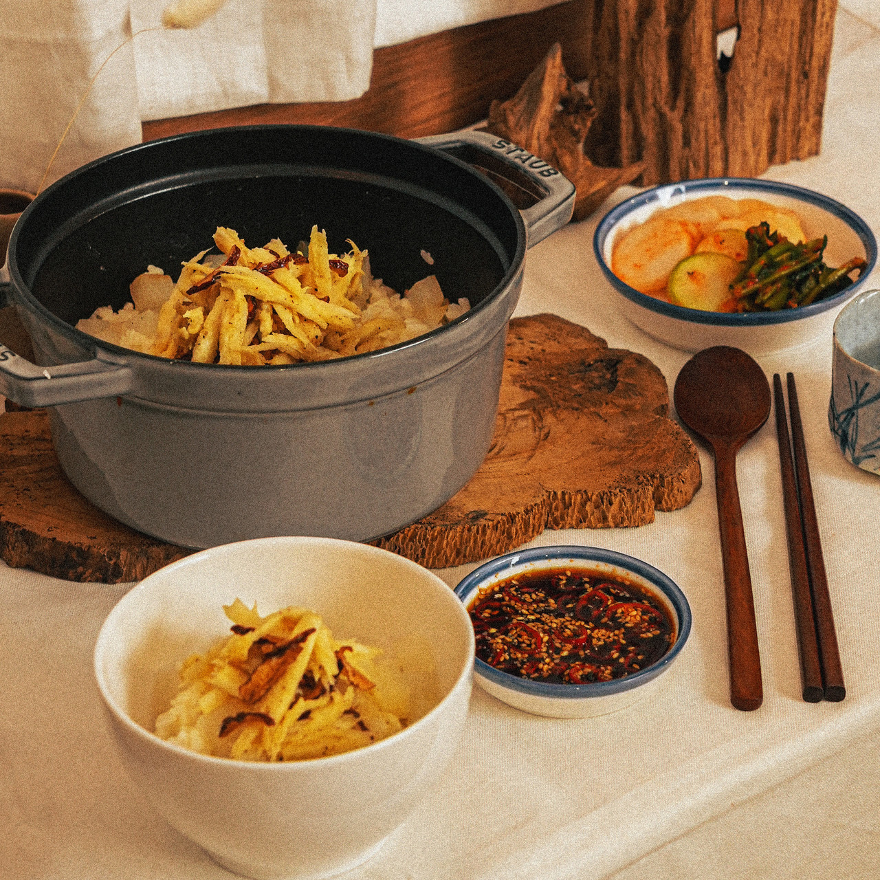 들깨가루 대신 잣가루로 더덕을 무쳐보세요. 더욱 향긋하고 고급스러운 더덕 솥밥이 완성됩니다.