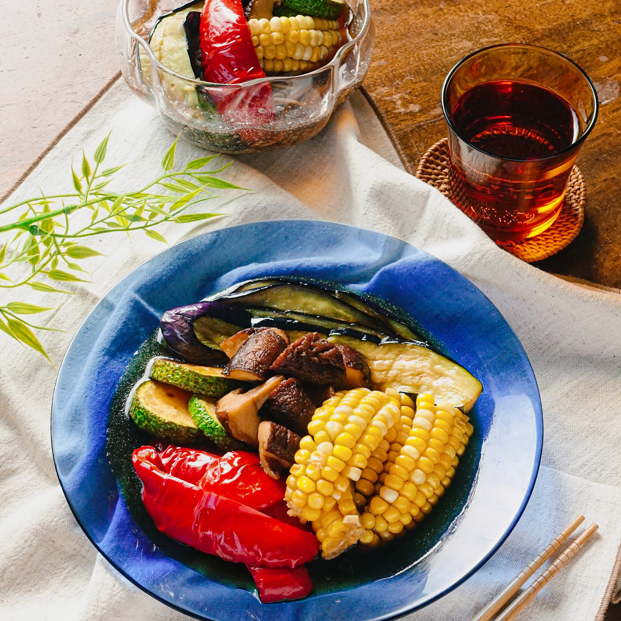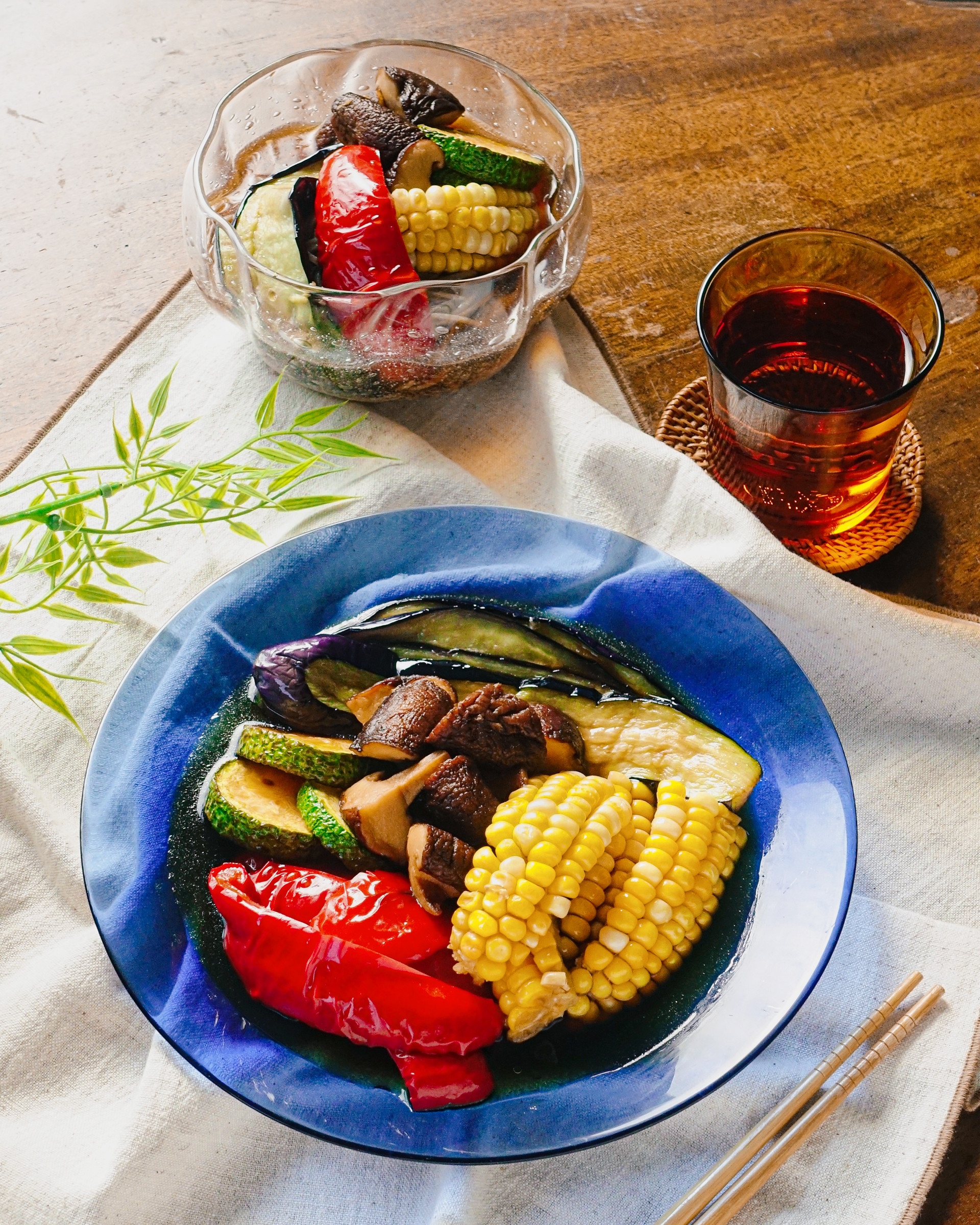 가지 1개, 애호박 1/2개, 파프리카 1개, 초당옥수수 1개, 표고버섯 3개, 맛스터 맛간장250ml, 물200ml, 식용유