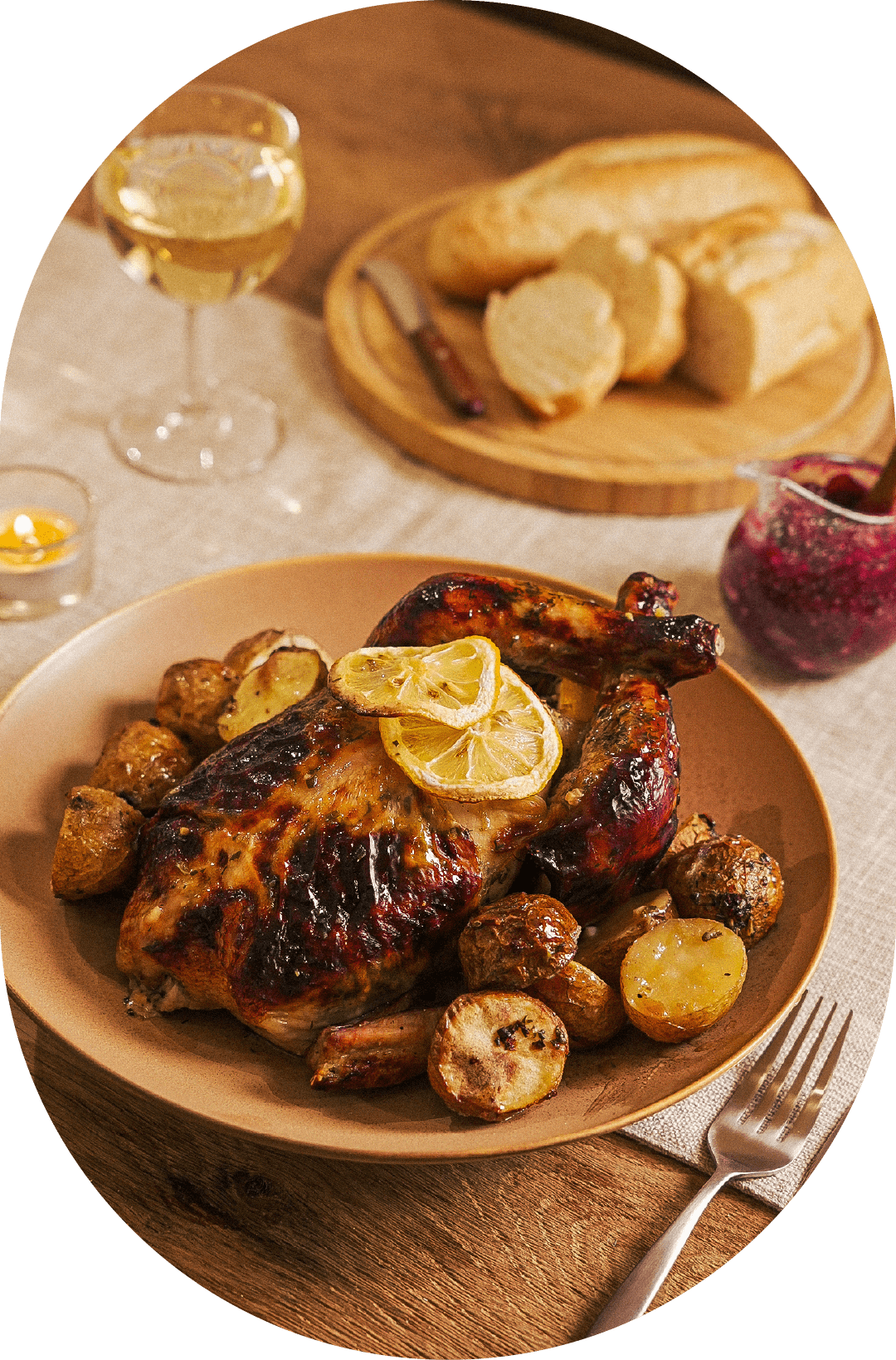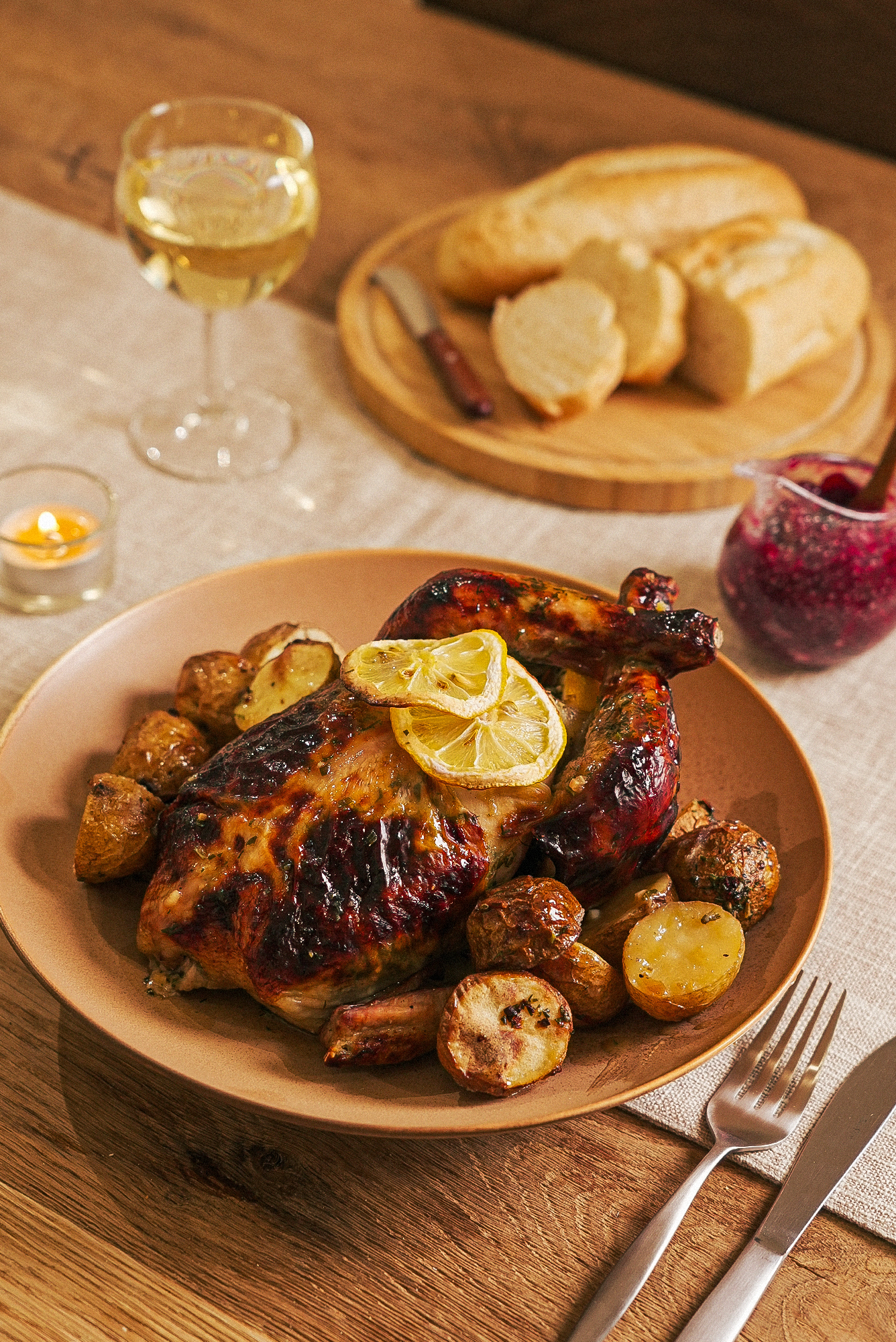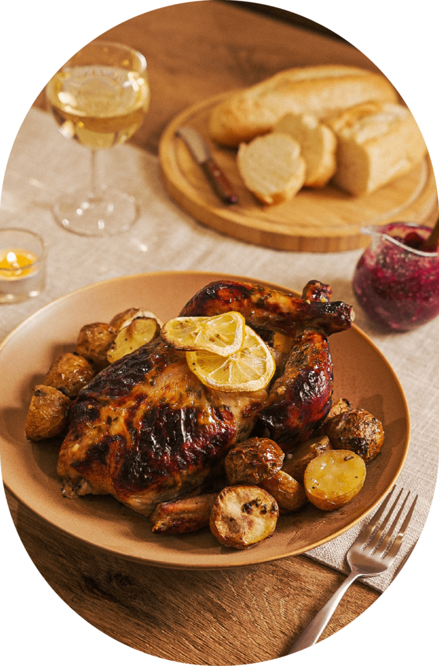 통닭 1마리(800g), 알감자 4알, 레몬 1개, 올리브오일, 소금, 후추