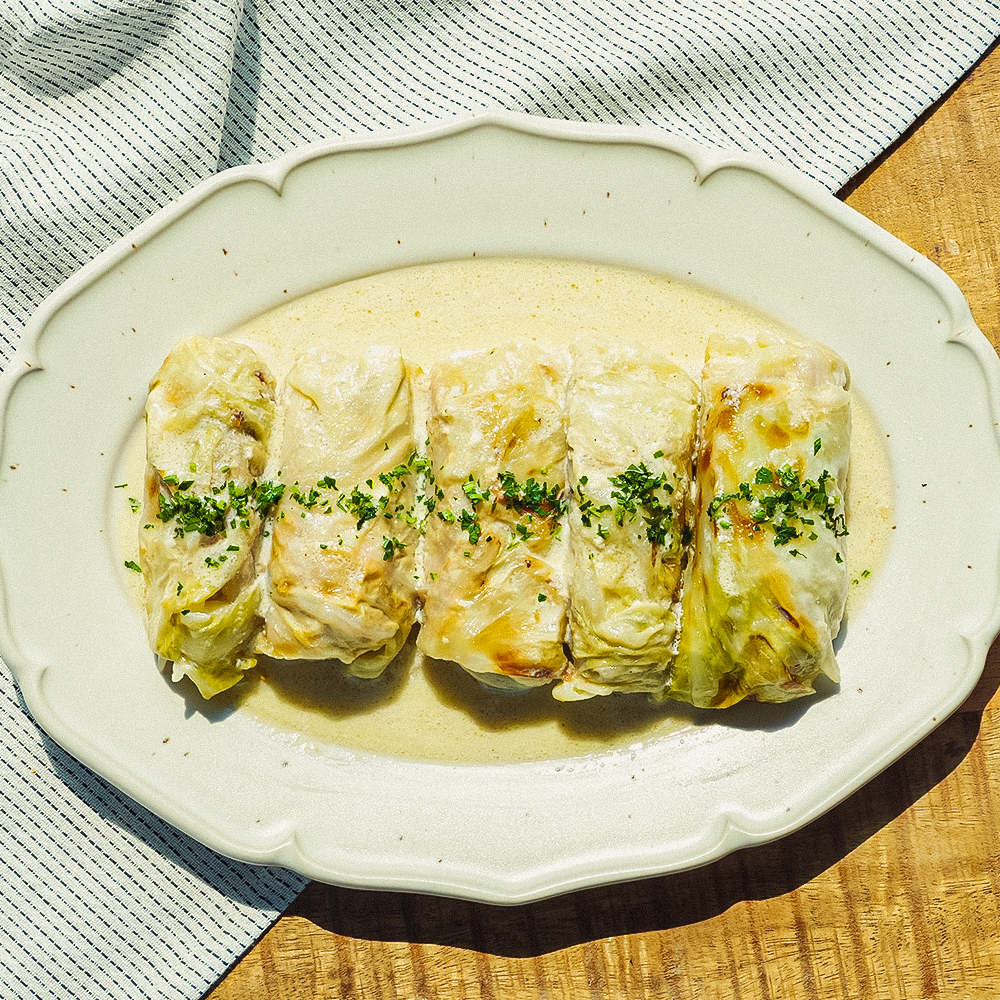 6. 접시에 양배추롤과 소스를 담아주고 파슬리를 뿌려주면 완성!