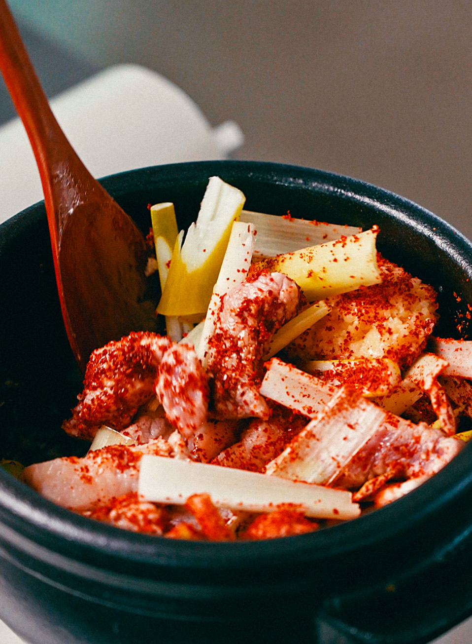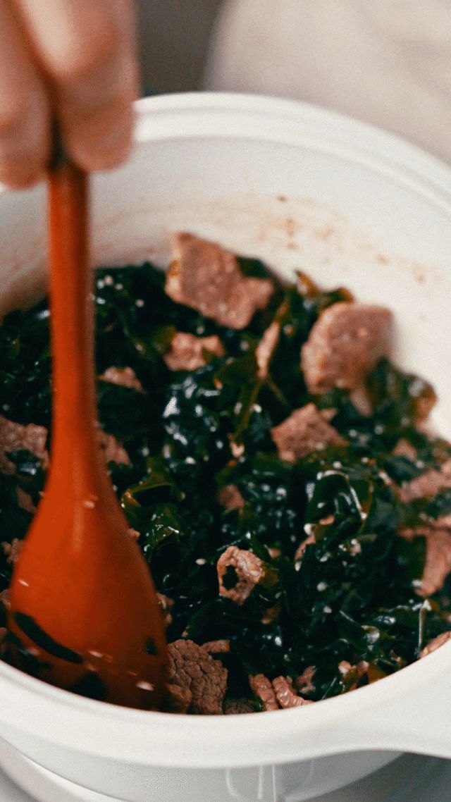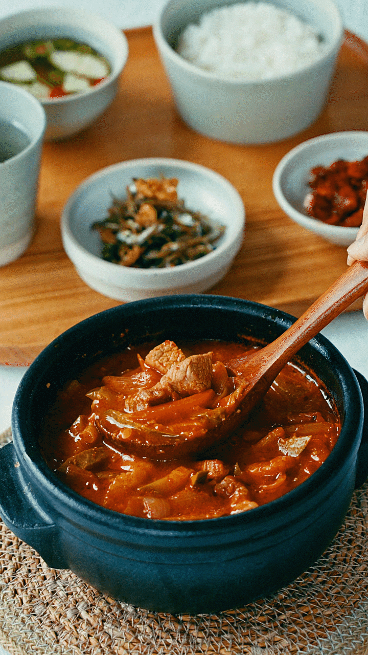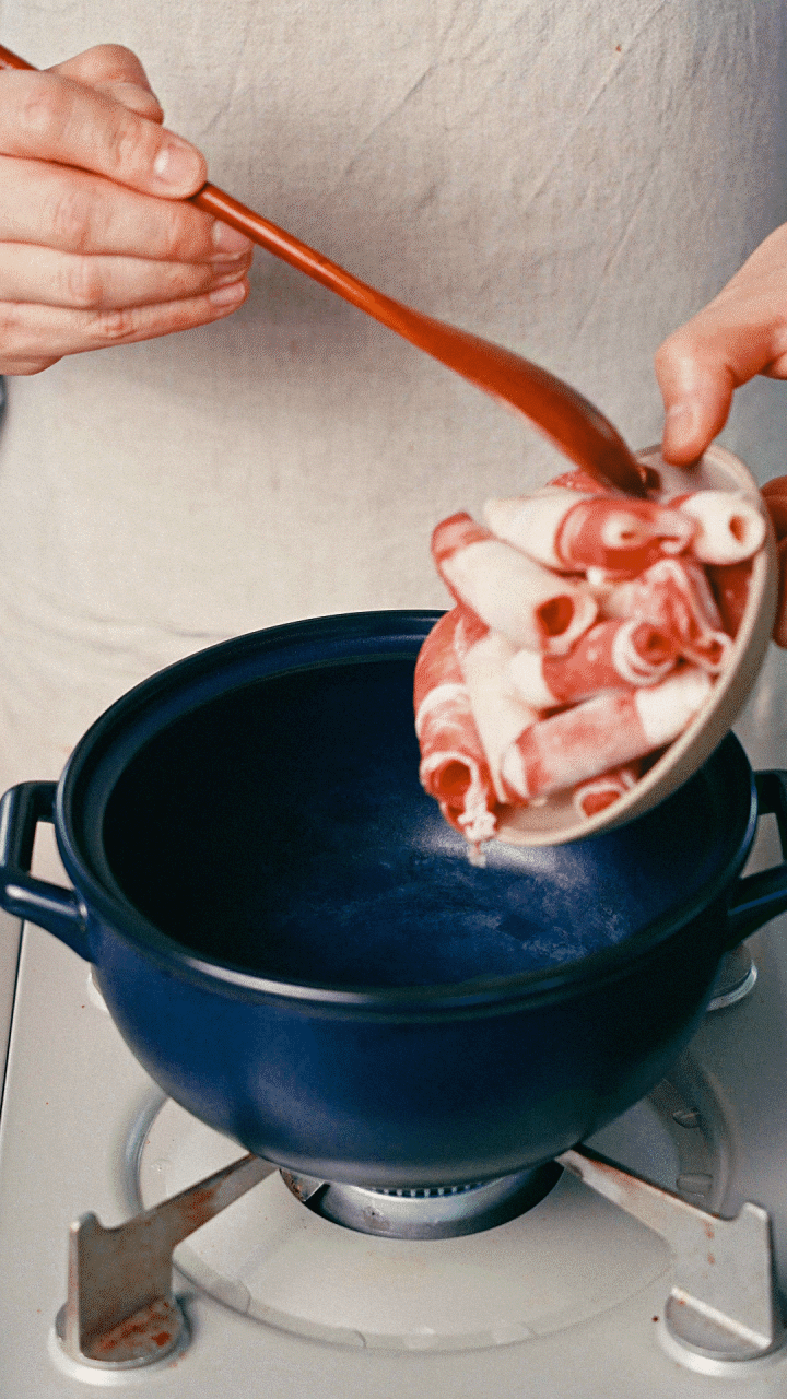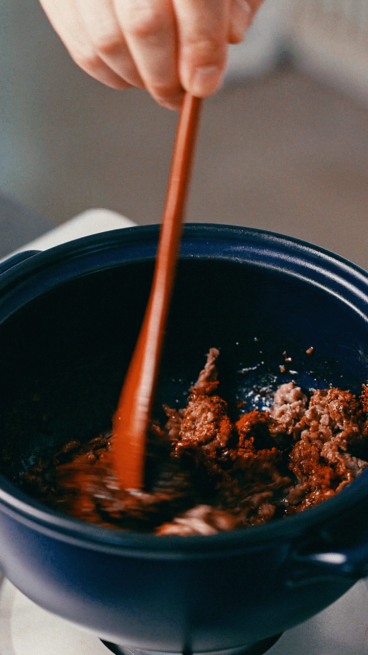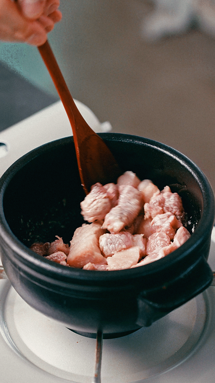 2. 열이 오른 냄비에 차돌박이를 노릇하게 볶아주다가 된장,