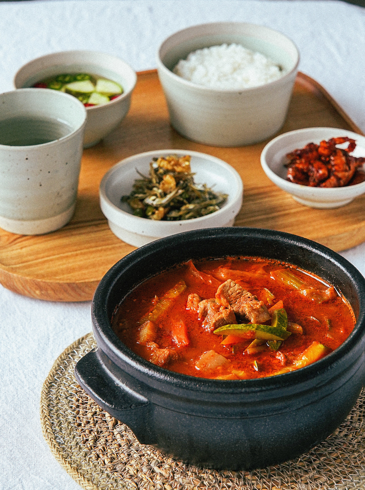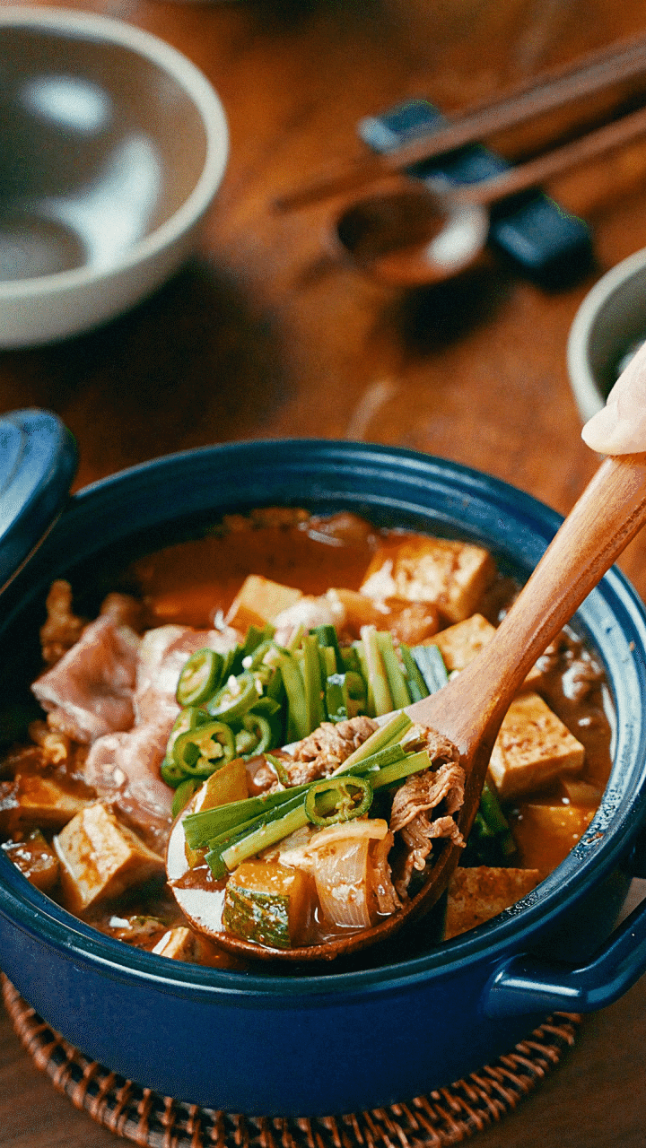 차돌박이 100g, 양파 1/2개, 애호박 1/2개, 감자 1개,