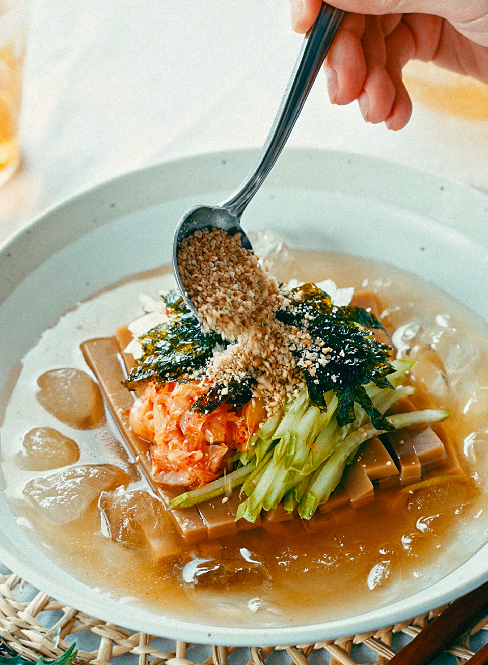 두부 1/2모, 부추 30g, 청양고추 1개, 맛스터 스파이시 1포,