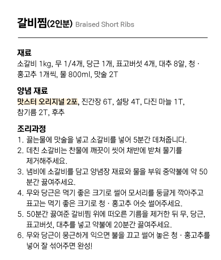 가족들 기억에 남을 나만의 갈비찜을 준비해요.