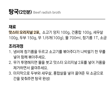 고기와 해물 모두 들어가는 탕국에 자칫하면 비어버릴 국물 맛을 맛스터로 깊게 채워 넣으면,