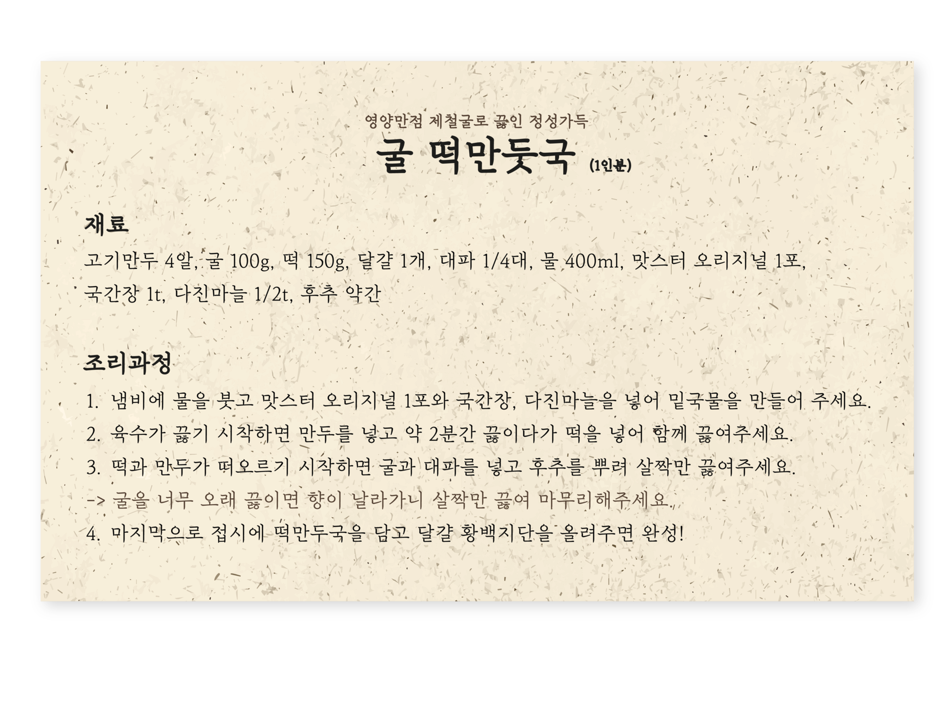 영양만점 제철굴로 끓인, 정성가득