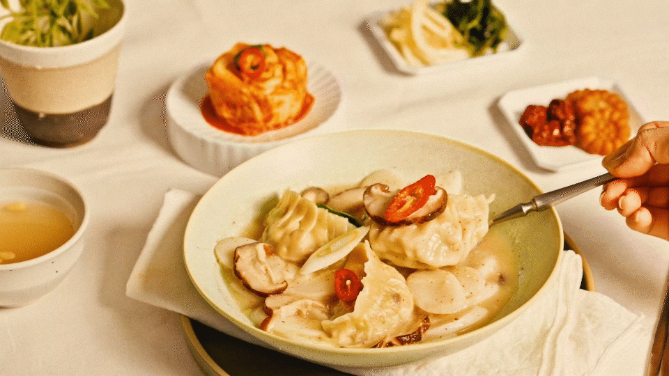 복이 깃들기를 소망하는 마음을 담아 복주머니처럼 통통하게 빚은 만두는