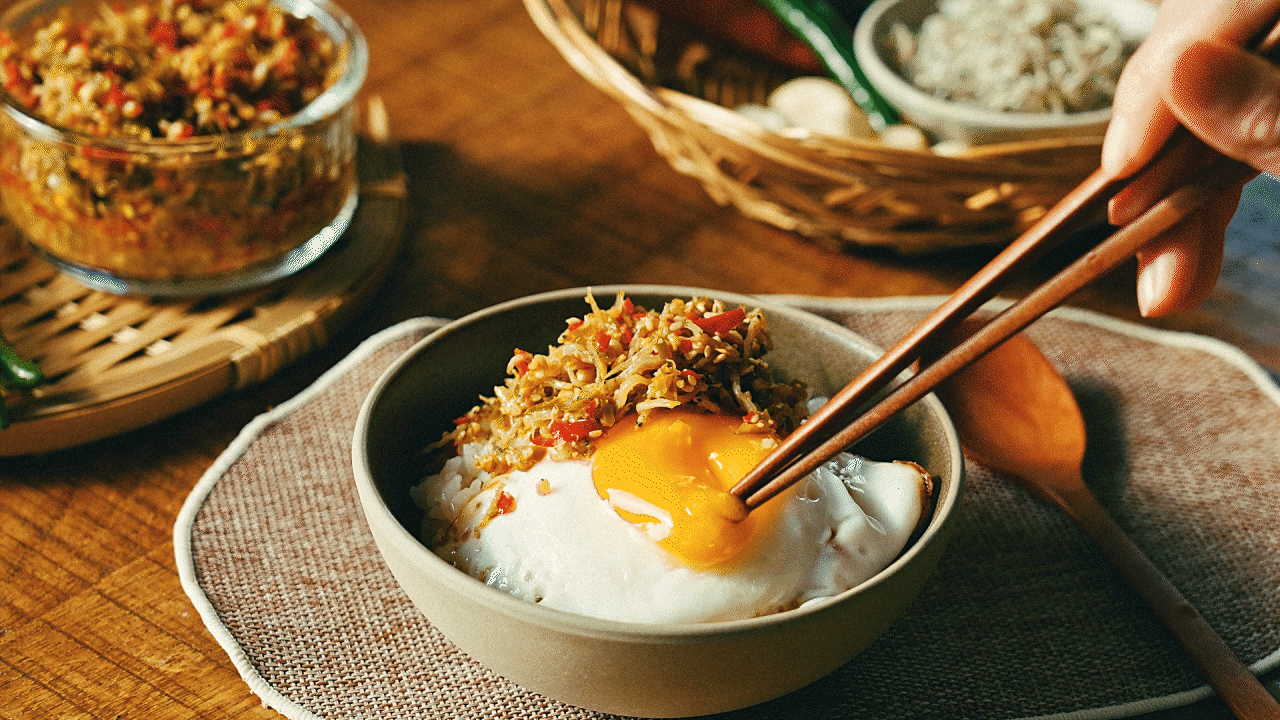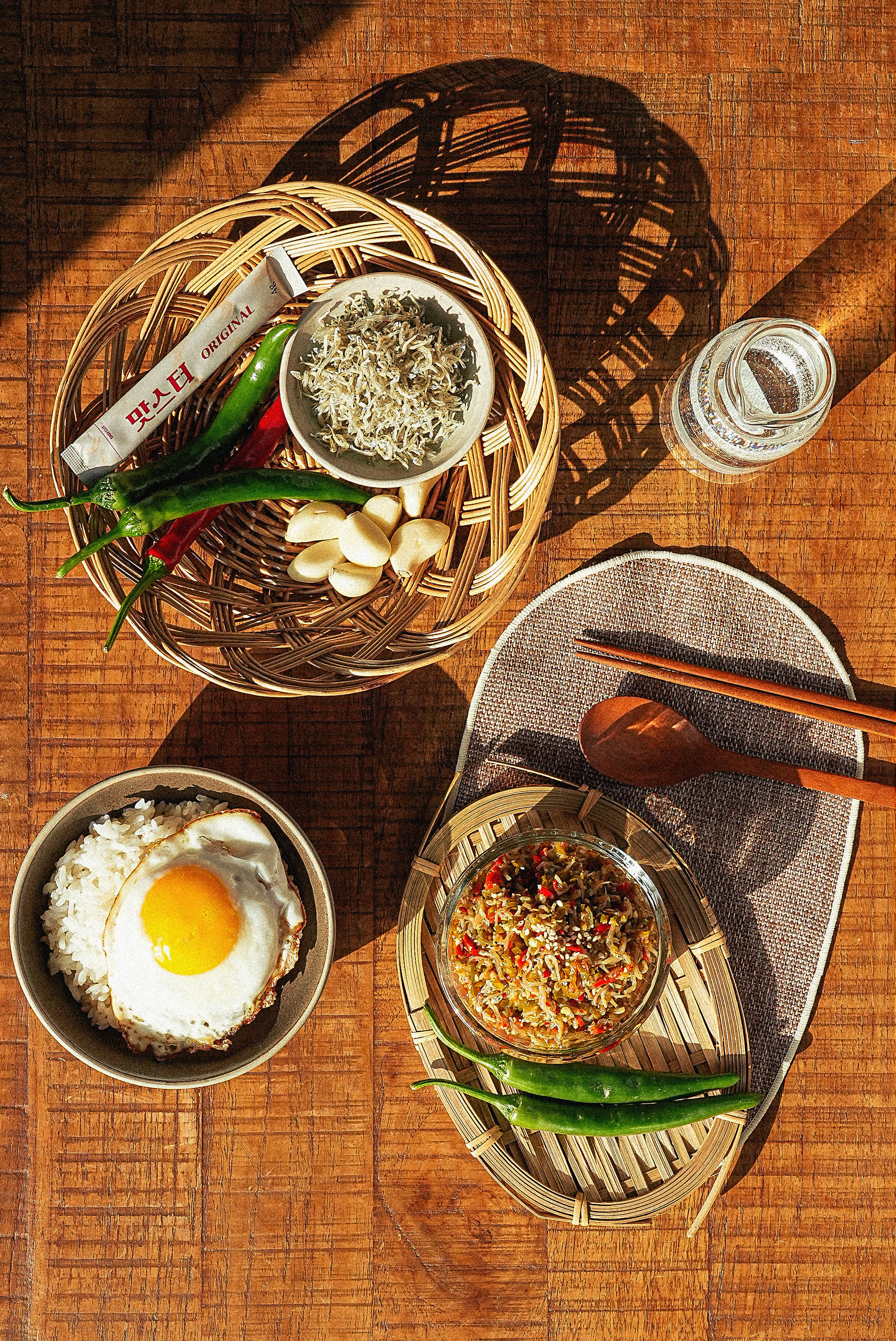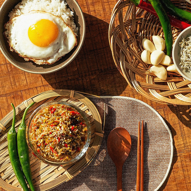 계란 후라이 하나 부쳐 밥과 고추 다짐장을