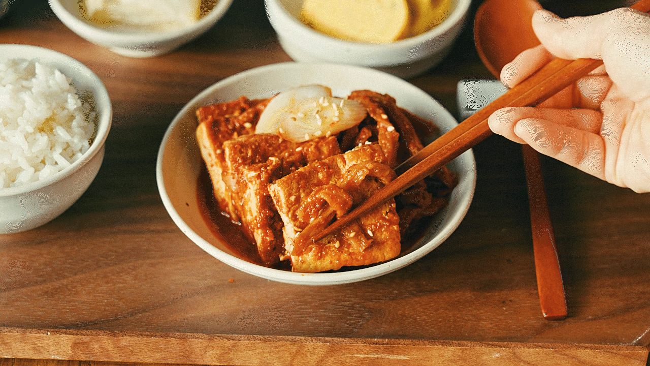 작은 구멍들 사이로 간이 잘 배어들고 쫄깃한 두부조림을 즐기실 수 있습니다.