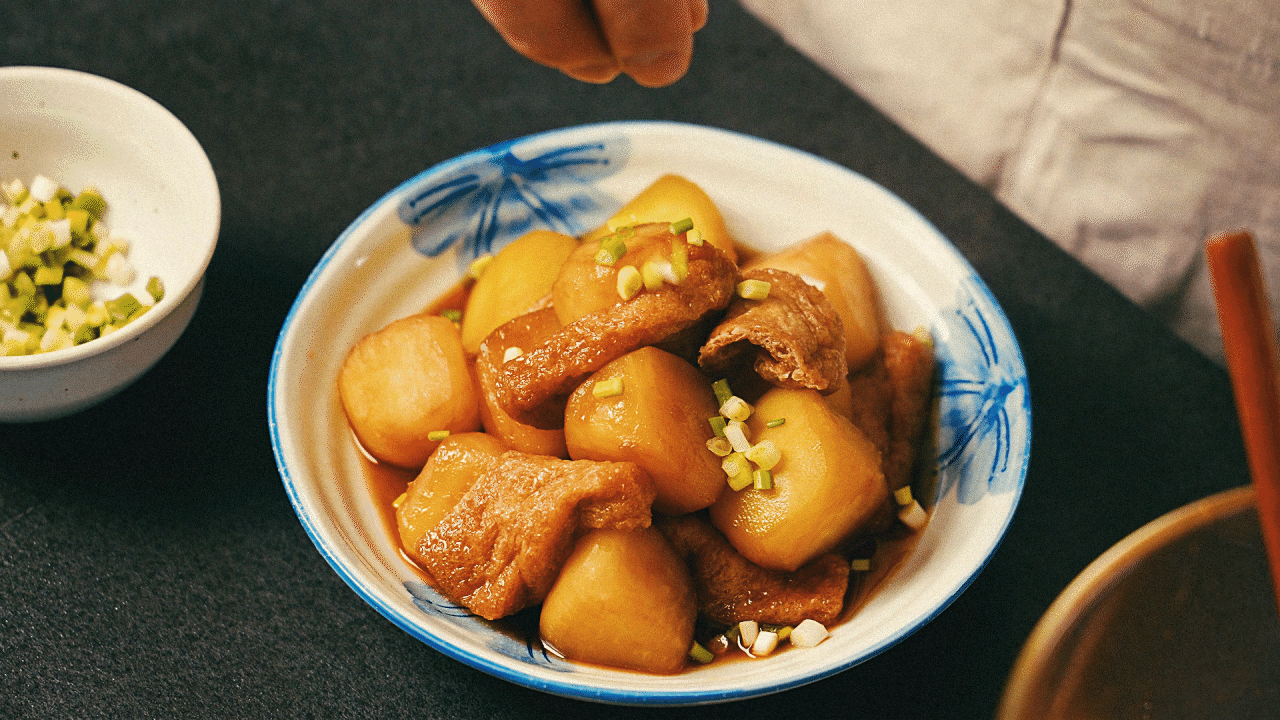 무와 유부를 넣어 달큰하게 졸인 일본식 무조림