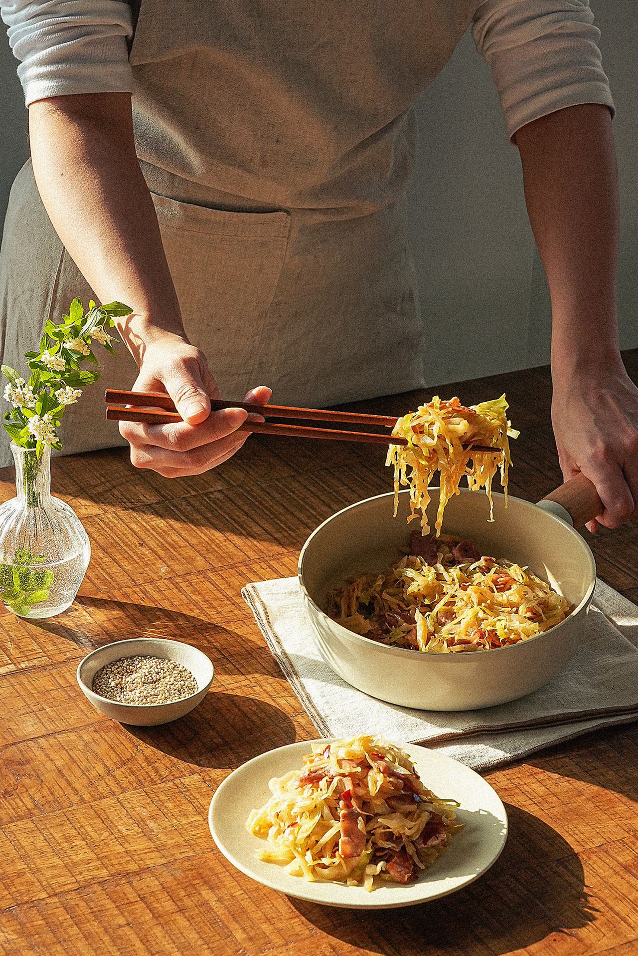 맛스터 Tip. 완성한 양배추 베이컨 볶음은 밥 위에 올린 뒤 간장을 살짝 둘러 덮밥으로 즐겨도 정말 좋아요!