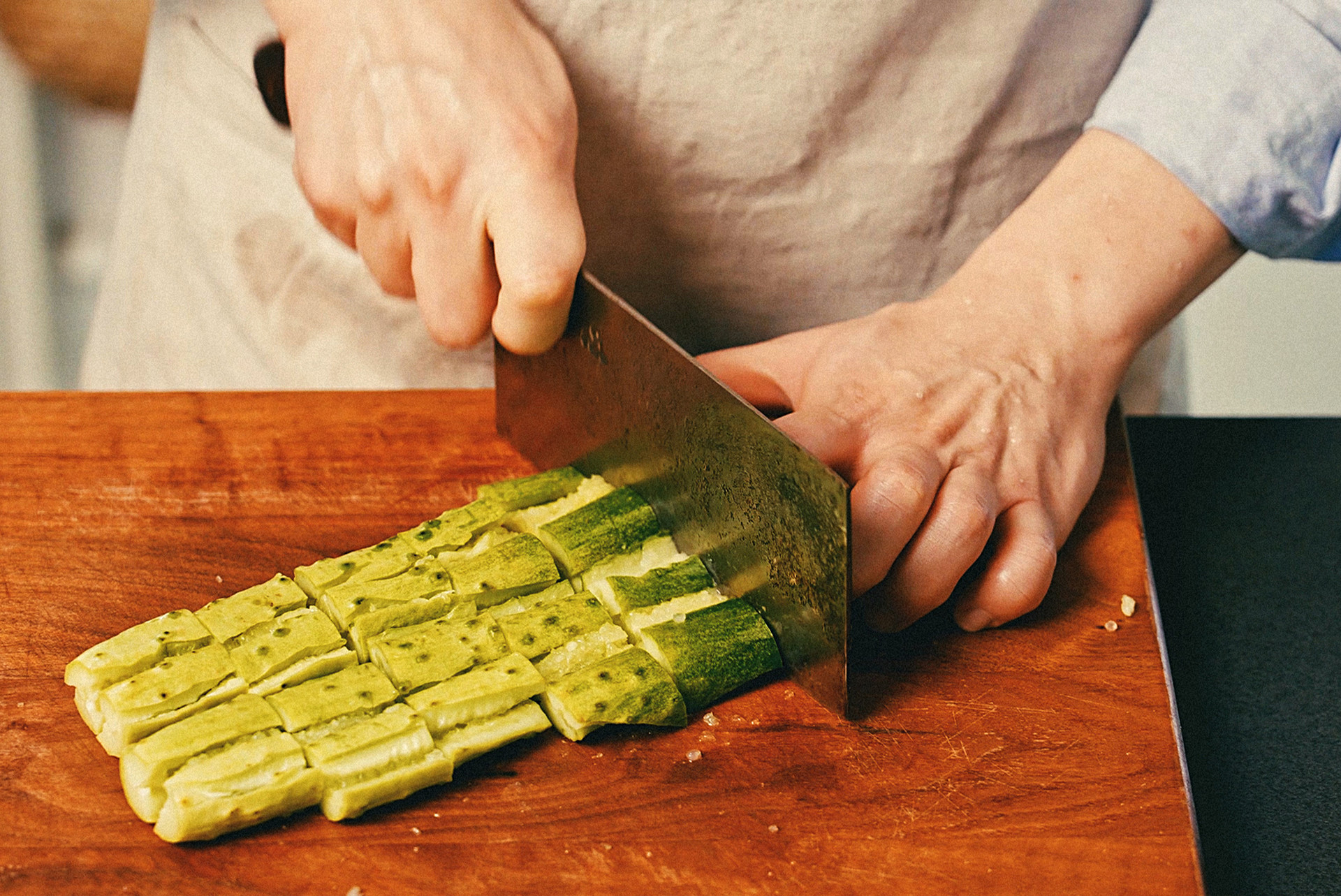 1. 오이를 칼로 두들겨 살짝 으깨준 뒤 잘라주고, 대파는 길쭉하게 채 썰어주세요.