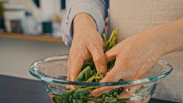 줄기는 20초간, 잎부분까지 모두 넣어 30초간 데친다.