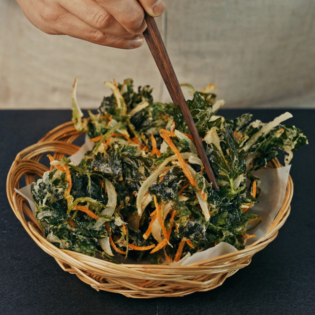 바삭하게 튀긴 2가지 봄나물을 올린