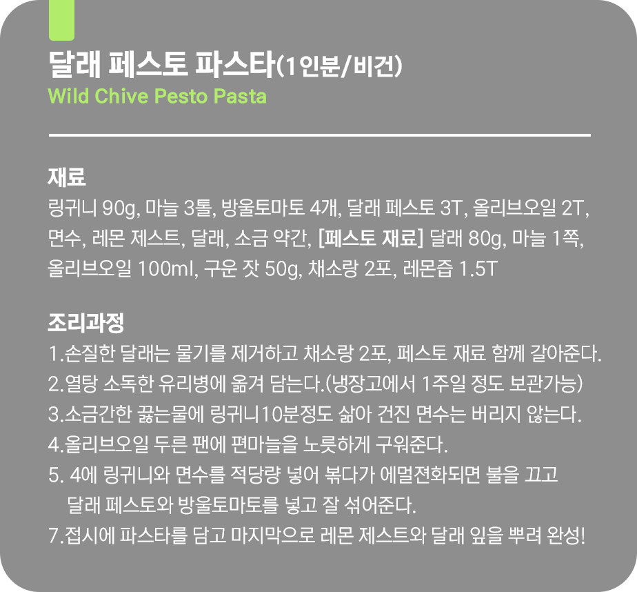 “달래 비건 페스토!”