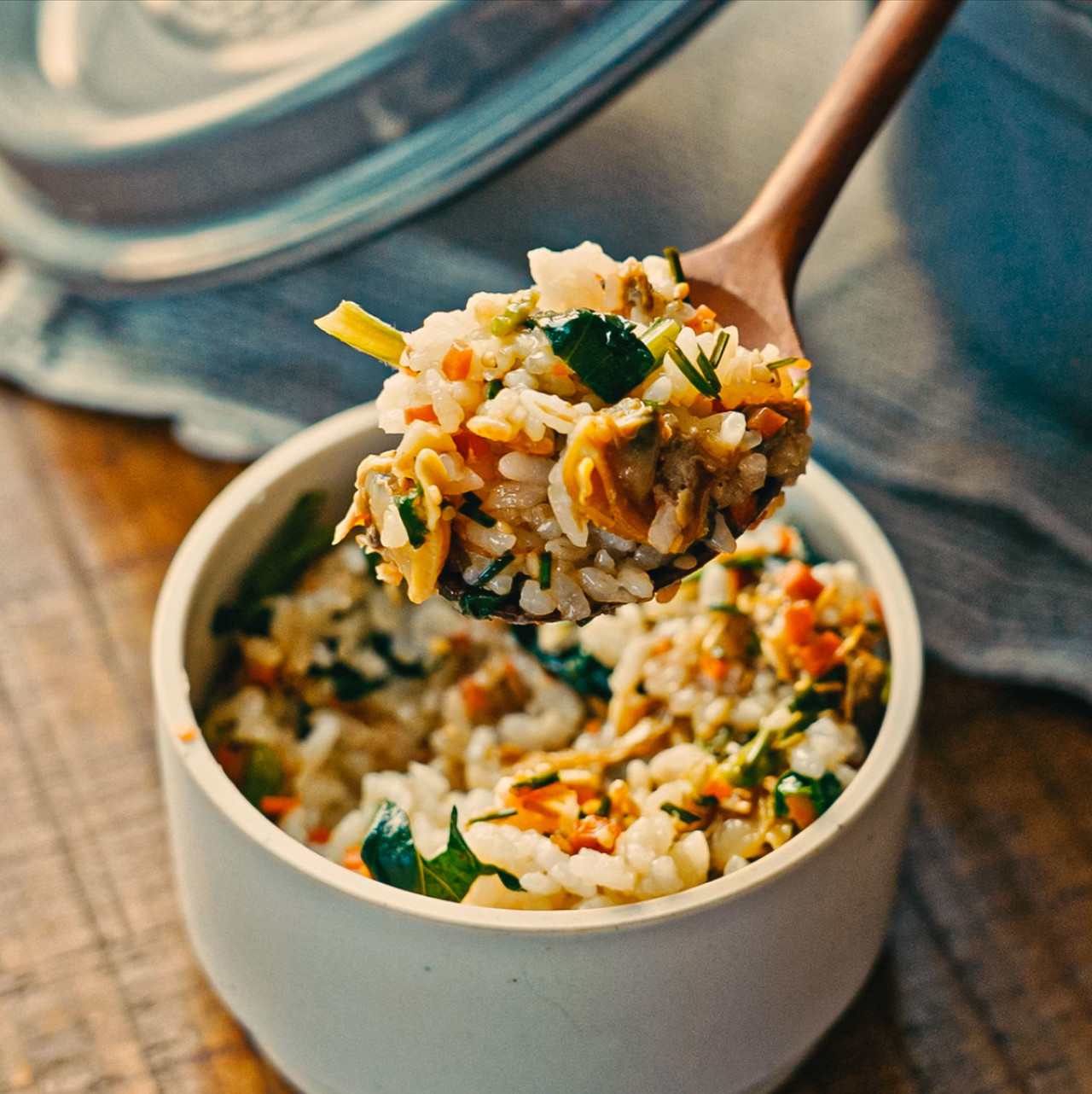 Manila clam & Aster Scaber Hot Pot Rice