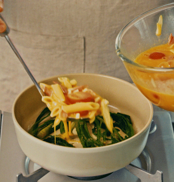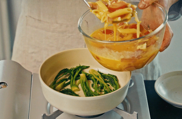 달걀에 채소, 치즈, 파스타를 넣어 만든