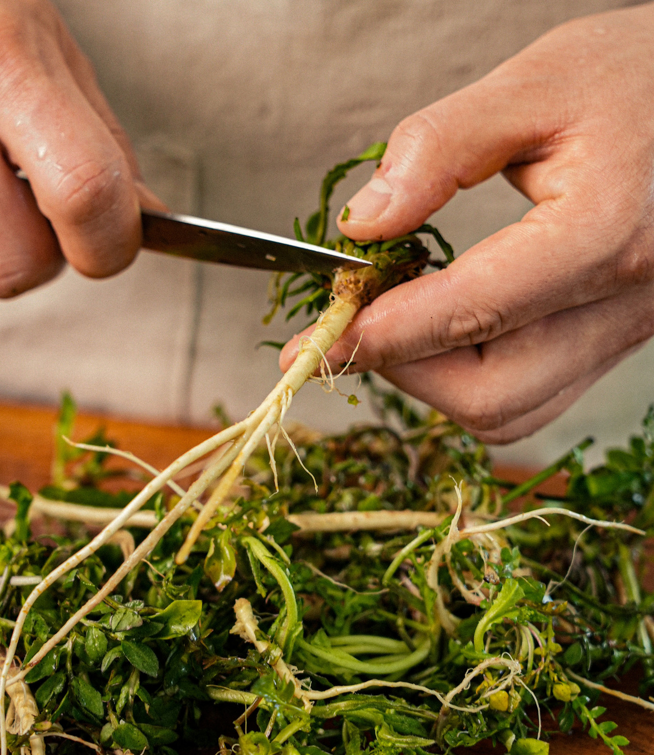 3. 손질한 냉이는 끓는 물에 살짝 데쳐 잘게 다진다.