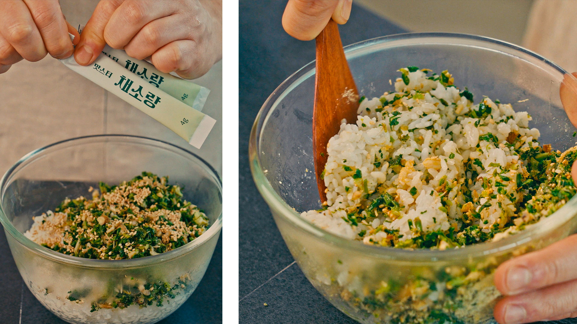갓 지은 따뜻한 밥에 냉이 다져 넣고
