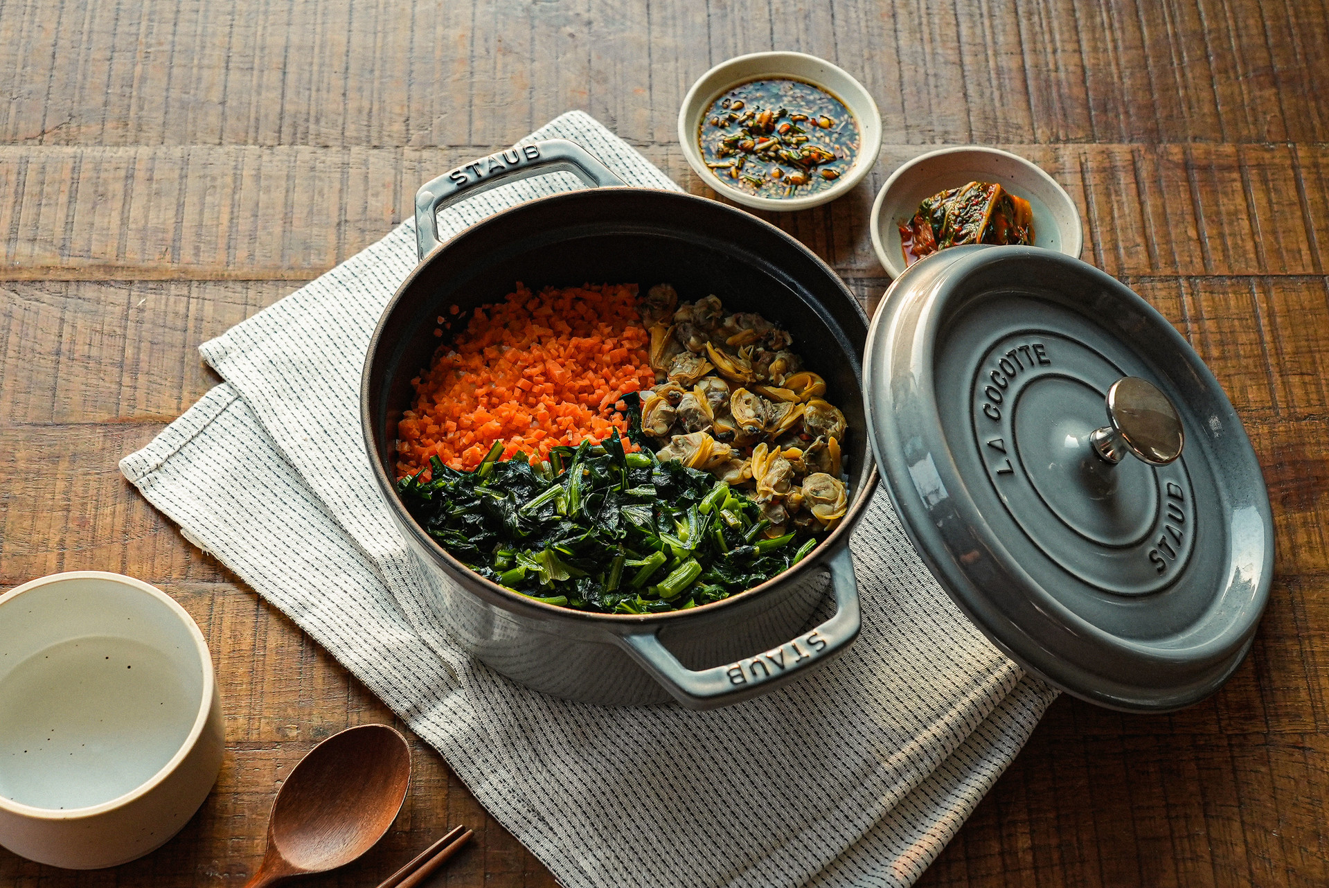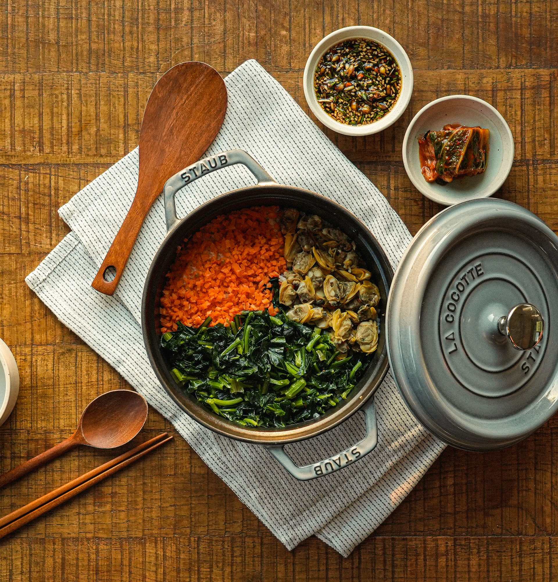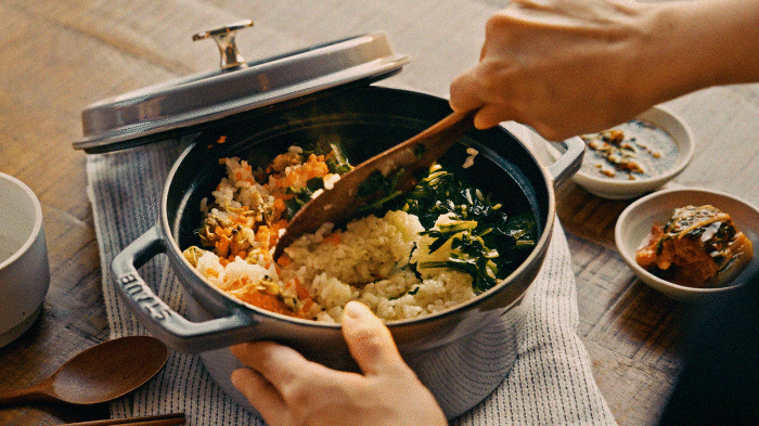 머금은 향긋한 솥밥을 완성했어요.